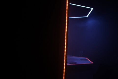 The emotional response to these changes is captured by the sensors and converted in stimulation to the audience that can be either simultaneous or spread across the group like a wave. Over the course of the performance, a minimalistic composition of light and sound unfolds with unpredictable moods, from very subtle and liminal to saturated flashes and noises. The performer and audience thus becomes the test subject of a mass experiment in visual and aural stimulation aimed at provoking subtle or bold sensations captured by the sensors and diffused across bodies – a new form of sensation at a distance.